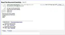 - As with many scam email messages in general, lottery scam messages may contain spelling and/or grammatical issues.