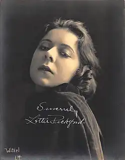 Born to John Charles Smith and Charlotte Hennessy, Lottie Pickford was named for her mother.[1] She was the middle child, born a year and two months after her sister Gladys Smith and three years before her brother John Charles Smith, who was known as Jack. She quickly became her father's favorite, much to her sister's annoyance.[2] After mistakenly believing she was a boy when first born, her father lovingly gave her the boyish nickname Chuckie.[2] Their father, John Charles Smith, died in 1898 and eldest sibling Gladys took on responsibilities. Lottie and Jack became extremely close, banding together against Gladys, whom they saw as strict.[3] Lottie idolized her brother Jack, and they remained close throughout their lifetimes.[4] Despite her sometimes tense relationship with her sister, Lottie was protective of her, and once jumped on D. W. Griffith to defend her sister during a heated argument with the director.[5]