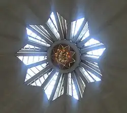 All Baháʼí places of worship, including the Lotus Temple, share certain architectural elements, some of which are specified by Baháʼí scripture. ʻAbdu'l-Bahá, the son of the founder of the religion, wrote that Baháʼí Houses of Worship must be nine-sided and circular.[16] While all current Baháʼí Houses of Worship have a dome, this is not regarded as an essential part of their architecture.[14] The Baháʼí scripture also states that no pictures, statues or images may be displayed within the House of Worship, and no pulpits or altars may be incorporated as an architectural feature (readers may stand behind simple portable lecture stands).[16]