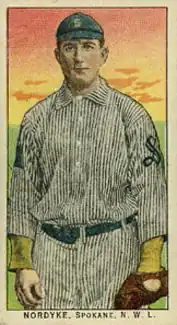 Louis Ellis Nordyke (August 7, 1876 – September 27, 1945) was an American Major League Baseball first baseman who played for the St. Louis Browns for one season, from April 18 to June 27, 1906.[1] He was sold to the Browns by the Tacoma Tigers of the Pacific Coast League, after having previously been on their Champion 1904–1905 team.[1][2] He was a popular player with both fans and his fellow players in 1903, when he played for the Spokane Indians, also of the PCL.[3] Nordyke later rejoined the team in 1909, and won the league's batting championship.[3] He also played for the 1907 St. Paul Saints. In total, Nordyke played professional baseball from 1901 to 1914.[4]