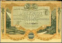Share of the Etablissements L. Blériot, issued 27 September 1905