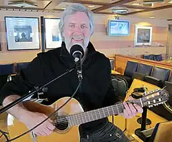 Jacoby has won the Prøysen Award[2][3][4] and the Herman Wildenvey Poetry Award,[5] and he was named "Beer Dog of the Year" (Norwegian: Årets Ølhund) by the Norwegian Brewery Association in 1990.[6] His best-known song "Hverdag" (Everyday)[3] has been named one of Norway's national songs.[2] Jacoby won the summer song competition held by the Nitimen program in 1995 (together with Lars Martin Myhre) for the song "En sommer er aldri over" (A Summer Is Never Over).[3] Jacoby has published Den store ølviseboka (The Big Book of Beer Songs)[2] and released several albums, including Hverdag (Everyday) and Noen & ingen (Some & None). From 1994 to 1999 he was essentially the in-house poet for the TVNorge's talk show Wesenstund. For several weeks he held a place on the musical hit list Norsktoppen with the song "Vise ved vindens enger" (A Ballad by the Wind's Meadow). The album Noen & ingen was on Norsktoppen for ten weeks in 2003, including two weeks in first place.[2] In 2008 Jacoby released the CD Puslespill (Jigsaw Puzzle). In 2013 he released the CD Måneskinn (Moonshine). In the fall of 2016 he published a skerry calendar with photos of skerries accompanied by QR codes linking to accompanying songs and videos.[7] He has participated in several in summer and Christmas tours with Lars Martin Myhre.