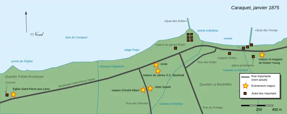 - ^ a b Albert-Blanchard, Corrine (1967). Caraquet : quelques bribes de son histoire (in French). Caraquet: Comité du centenaire de Caraquet. pp. 26–29.