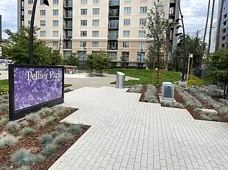 In July 2021, San Jose city officials conducted a groundbreaking ceremony for Pellier Park as an open space designed to provide downtown residents with a space away from the downtown hustle.[9][3] The park's construction was projected to have a budget of approximately $2.6 million.[3] The park honoring California's "Prune King" reopened during a public ceremony on October 18, 2023.[6][13]