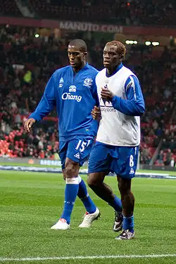 Saha joined Everton in 2008 for an undisclosed fee,[114] signing a two-year 'pay-as-you-play' deal.[115] Not match-fit at his time of signing, Saha offered to train without being paid while injured.[115]