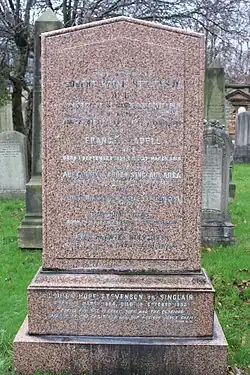 Louisa died on the 13 October 1950 and is buried in her parents' family plot near the centre of the northern 19th-century extension of Dean Cemetery in western Edinburgh alongside her husband.