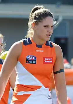 Louise Stephenson (born 9 July 1995) is an Australian rules footballer playing for the Western Bulldogs in the AFL Women's competition. Stephenson was recruited by Greater Western Sydney as a priority player in September 2016.[1] She made her debut in the five point win against Melbourne at Blacktown ISP Oval in round five of the 2017 season.[2] She played three matches in her debut season.[3]