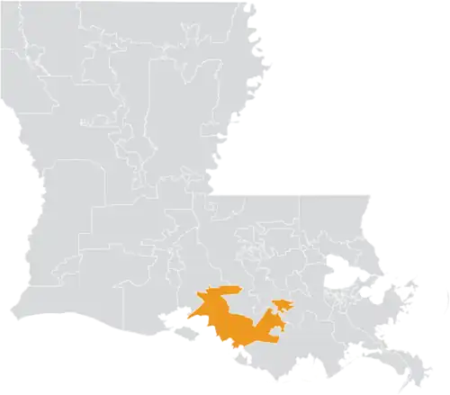 The district overlaps with Louisiana's 1st, 3rd, and 6th congressional districts, and with the 46th, 49th, 50th, 51st, 52nd, 53rd, and 55th districts of the Louisiana House of Representatives.[4]