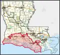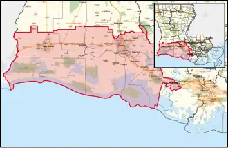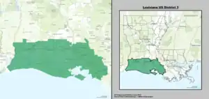 Louisiana's 3rd congressional district is a United States congressional district in the U.S. state of Louisiana. The district covers the southwestern and south central portion of the state, ranging from the Texas border to the Atchafalaya River.