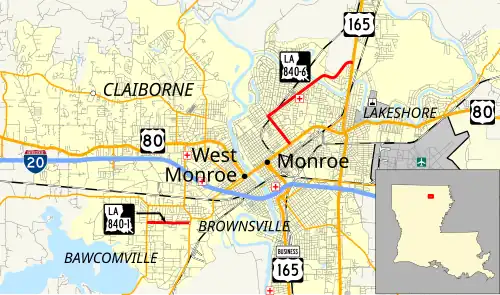 Louisiana Highway 840 is a collection of two current state highways which serve Monroe and West Monroe in Ouachita Parish, and three deleted state highways.