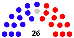 Since the council's inception, Democrats have maintained a majority in the chamber, currently with seventeen members (65%). Democrats gained two seats in the 2010 election, gained another two seats in the 2018 midterms, lost two seats in the 2022 election, and 4 in the 2024 election yet still maintained a majority. On January 29, 2025 Democrat Paula McCraney announced she was leaving the party and becoming an Independent.[1]