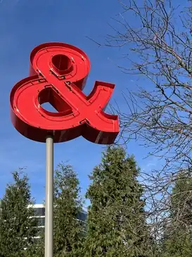 The Seattle Times and the Seattle Post-Intelligencer said the work is multifaceted and interactive, respectively.[3][4] According to The Stranger, "The piece consists of cast concrete benches, a sidewalk-like pathway, a small, circular reflecting pool, and a double-trunked crabapple tree that spell out the words 'love' and 'loss.' Jutting up from the middle is a red neon ampersand."[5] The ampersand revolves.[6]