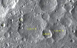 By convention these features are identified on lunar maps by placing the letter on the side of the crater midpoint that is closest to Love.