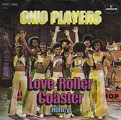 "Love Rollercoaster", sometimes rendered as "Love Roller Coaster",[4] is a song by American funk/R&B band Ohio Players, originally featured on their 1975 album Honey. It was composed by William Beck, Leroy Bonner, Marshall Jones, Ralph Middlebrooks, Marvin Pierce, Clarence Satchell, and James Williams.[5] It was a number-one U.S. hit in January 1976, and was certified gold. In Canada, the song spent two weeks at number two.[6] "Love Rollercoaster" was covered by American rock band Red Hot Chili Peppers for the soundtrack of the 1996 animated movie Beavis and Butt-Head Do America.