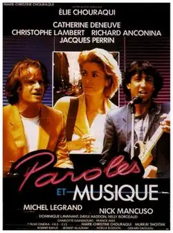 Love Songs (French: Paroles et Musique) is a 1984 comedy-drama romance film directed and written by Élie Chouraqui and starring Catherine Deneuve and Christopher Lambert. It is also the film debut of Charlotte Gainsbourg.[1]