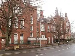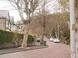 Underhill, at 99 Kells Lane, is a Grade II* listed building.[65] It was the home of Sir Joseph Wilson Swan between 1869 and 1883[66] and was the site of many pioneering experiments in photographic processing and in electricity.[67] Described as "a large, unlovely polychrome villa",[68] Underhill is triple gabled, and built of roughly dressed sandstone, and was the first private residence in the world to be lit by electric light. It later became a school, and is now retirement sheltered housing.[69]