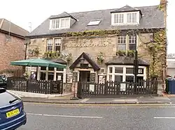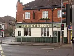 Low Fell is home to numerous public houses. The New Cannon was established on Durham Road in 1826 and soon became something of a social hub for the village, hosting travelling troupes, lessons in quadrille dancing[92] and hosting plays from visiting theatre as early as the 1820–30s.[12] So successful was the New Cannon that in those formative years it "monopolised trade on the new major route and was, in fact, the centre of village life".[21] The Cannon Inn still survives today, along with other public houses such as the Black Horse on Kells Lane, the Buck (now The Beaconsfield) on Beaconsfield Road (formerly Buck Lane), the Crown (now the Tap at Carters Well) and the Gateshead Arms on Durham Road. All of these venues were in existence prior to 1858.[53]