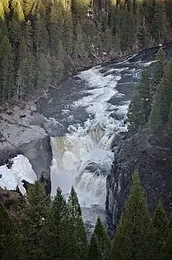 Lower Mesa Falls is a 65-foot (20 m) waterfall on the Henrys Fork in Fremont County, Idaho. It is located in the Caribou-Targhee National Forest on the Mesa Falls Scenic Byway.[2] It is downstream of Upper Mesa Falls.
