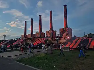 The characteristic chimneys of Lowlands 2024 in the ArmadiLLow area, accessible 24 hours a day during the festival weekend.