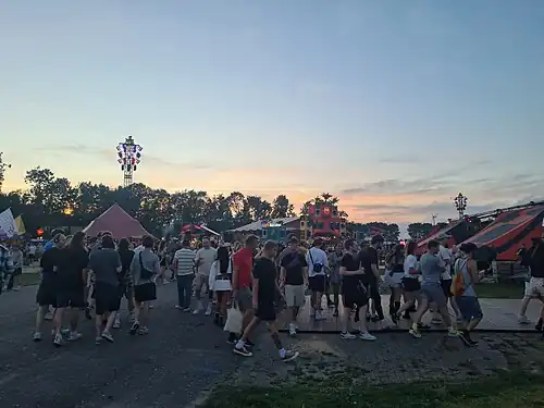 In recent years, the festival is attended by around 55,000 visitors, and features over 200 acts on more than ten stages every year which are named according to the NATO phonetic alphabet apart from the Heineken stage (named after the beer brewer Heineken, the main sponsor of the festival since 2015). The majority of stages are inside large tents to protect spectators against inclement weather, with the largest being approximately the size of a regulation football pitch.