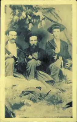 ![]() Wishart brothers with dead Lowry Gang member Tom Lowry, c. 1872[1] | |||||||