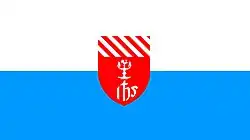 The flag is the school crest emblazoned on rectangular bands of white and blue. The use of the school flag is reserved for ceremonial occasions, like weekly school assemblies where it is hoisted, preceding the singing of the school song, and at the head of the march past of houses during the annual Sports Day.