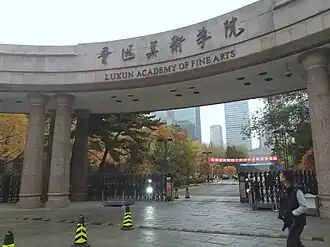 The school was founded in 1938 as Luxun Academy of Arts by Chinese Communist Party leaders, including Mao Zedong and Zhou Enlai, in the town of Yan'an, Shaanxi Province.[1] The school was moved to Shenyang in 1940, span off its music department in 1953 (which later became Shenyang Conservatory of Music) and was renamed Lu Xun Academy of Fine Arts in 1958.[2][3]