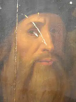 A preliminary cleaning of the painting was carried out, by Professor Giancarlo Napoli of the Suor Orsola Benincasa University in Naples, and revealed micro-cracking (craquelure) of the paint surface which cannot be reproduced artificially and supported a Renaissance date.[9] Further investigation was carried out by a body of specialists in different fields including INNOVA, CIRCE, University of Naples, Cybernetics - National Research Council, and University Suor Orsola Benincasa.