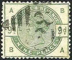 - ^ a b "1883-84 9d dull green SG195 FORGERY, D.O. Brouwer Philatelist, 10 July 2012". Archived from the original on 26 May 2024. Retrieved 10 July 2012.