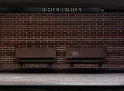 This station is named for Lucien L'Allier Street, whose name was changed from rue de l'Aqueduc in order to commemorate Lucien L'Allier, chief engineer for the initial network of the Metro, as well as for the construction of Saint Helen's Island and Notre Dame Island for Expo 67. He had died while the station was under construction. A plaque in the station commemorates him.