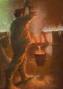 In 1914 Lévy-Dhurmer married Emmy Fournier, who had been an editor of the early feminist newspaper La Fronde.[2] By this time he was working primarily on landscapes, both oil and pastel, in a style similar to Whistler and Monet.