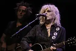 Williams' second album, Happy Woman Blues, appeared the following year, and consisted of her own material. Trouser Press felt the record was more "rock-oriented" than Williams' debut album, writing that she used timeworn ideas such as "smoke-stained bars, open roads and a heart that never learns" but reimagined them "in a way that is both contemporary and uncynical".[27] One album track, "I Lost It", was re-recorded 18 years later for Williams' fifth album Car Wheels on a Gravel Road (1998). In the 1980s, Williams moved to Los Angeles, California (before finally settling in Nashville, Tennessee), where, at times backed by a rock band and at others performing in acoustic settings, she developed a following and a critical reputation. While based in Los Angeles, she was briefly married to Long Ryders drummer Greg Sowders, whom she had met in a club.[28]