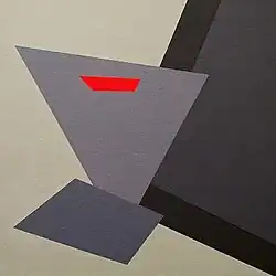 Cox has exhibited her paintings in the UK and internationally, including an exhibition of British painters in China,[5][6][7][8] and has curated exhibitions in London.[9][10] Andy Parkinson wrote of her work, "Lucy Cox's playful geometric arrangements, almost inhabiting a believable three dimensional space, seem to celebrate the ways in which colour creates spatial ambiguities and irregularities".[11] Sharples[3] described Cox's paintings as compositions which "reveal vivid organic and geometric shapes, gradations of colour, exchanges and explorations of the figure/ground relationship between translucency and opaqueness", while Robert Priseman describes her abstract paintings as "juxtaposing the autonomy of geometry with repetition and spontaneity".[12] She is a member of Contemporary British Painting[2] and on the advisory board of The Priseman Seabrook Collections.[13]