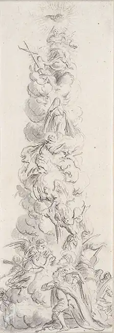 In the mid-1680s, he made designs for the Pestsäule (Trinity or Plague Column) on the Viennese Graben, which were carried out in 1687 under his direction by the brothers Peter and Paul Strudel, with whom, according to Tessin, he was friends.[16] Some sketches and drafts of this project have been preserved in the Theatermuseum in Vienna.[17]