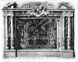 From this point on, the Burnacinis were responsible for the design of festivals and the construction of theaters, including the invention of all the necessary decorations for the imperial court. At the imperial court theater, they introduced their own system of convertible stage sets made of canvas flats (backdrop stage), which had been tried and tested in Italy, and perfected it further. The most famous Burnacini stage works from this early period at the service of the Habsburgs include the tournament opera La gara by Alberto Vimina (Vienna, 1652) and L'inganno d'Amore by Benedetto Ferrari, which was held on 3 March 1653 in Regensburg on the occasion of the Reichstag (December 1652 – May 1654) and was premiered in a specially built, wooden theater house.[6] Various other works followed, sometimes for ephemeral buildings such as the Triumph of the Blessed Sacrament in Prague in 1652 and the Castrum Doloris for Archduke Ferdinand IV from 1654, of which exists a copperplate engraving in the collections of the Albertina in Vienna (inv. No. DG 2018/207).