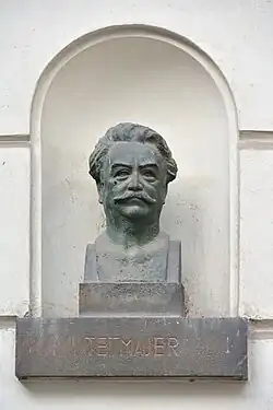 Ludwig von Tetmajer (14 July 1850, Krompachy, Upper Hungary - 1 February 1905, Vienna, Austria) was a professor at the Eidgenössischen Polytechnikum, the fore-runner of modern ETH in Zurich. Tetmajer was a pioneer in the development of the research laboratories for determining the physical and mechanical properties of the construction materials and a co-founder of the Festigkeitsprüfungsanstalt, the modern Eidgenossische Materialprüfungs- und Forschungsanstalt (Empa) of Switzerland.