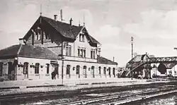 Mundenheim station was opened in 1886. Four years later, on 15 October 1890, the metre-gauge Ludwigshafen–Dannstadt railway was opened, which crossed the Mannheim–Saarbrücken railway (originally called the Palatinate Ludwig Railway or Pfalzische Ludwigsbahn) to the north of the station. The at-grade crossing of the tracks was controlled by signals. Mundenheim became the terminus. Years later, it was renamed Ludwigshafen-Mundenheim, thus taking account of the incorporation of the village into Ludwigshafen in 1899. On 1 March 1911, the narrow-gauge line was extended to Meckenheim. The narrow-gauge line was located parallel to Maudacher Straße; it had four tracks with platforms next to the entrance building. The freight track branched off from Maudach in the west before these platforms and ran south to the freight shed.[5]