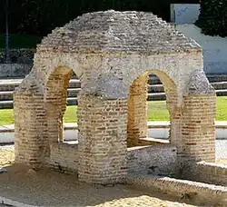 Near this church is the Fontanilla, the public fountain from which, according to tradition, Columbus's boats drew the fresh water for their voyage. The fountain lay between the church's Puerta de los Novios[3] and the wharf from which Columbus's expedition departed. The base of the fountain dates back to Roman times and it is protected by a tetrapylum, a sort of gazebo, constructed of stone in the thirteenth century[4] in the Mudéjar style.