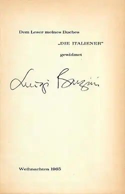 Luigi Barzini Jr. (21 December 1908 – 30 March 1984) was an Italian journalist, writer and politician most famous for his 1964 book The Italians, delving deeply into the Italian national character and introducing many English and German speaking readers to Italian life and culture.[1]