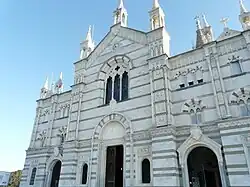 He then worked on numerous civil and religious buildings in Genoa, where he had his studio in Piazza della Meridiana, particularly in the city center, where other notable engineers and architects of the time also operated, including Gino Coppedè, Benvenuto Pesce Maineri, Giuseppe Cannovale, Cesare Gamba, Dario Carbone, Gaetano Orzali, Stefano Cuneo, Raffaele Croce, Giuseppe Tallero, G. B. Carpineti, the Celle brothers, and others. Among his works from this period are the building at number 34 on Via XX Settembre,[1] the Palazzo Balbi Piovera Raggio on Via Balbi (1881), and the facade of the Sanctuary of Our Lady of Montallegro in Rapallo (1896). He also designed the monumental tomb of Armando Raggio (1895),[2] known as the "Duomo di Milano", located in the Monumental Cemetery of Staglieno.