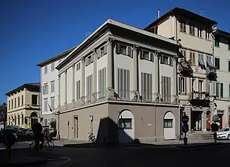 Following the restoration in 1814 of the House of Lorraine to the Grand Duchy of Tuscany, he played a prime role in the reconstruction of the Scrittoio delle Reali Fabbriche, first as Secretary, then Director (1820–35).[2] This important department controlled all public building within the Grand Duchy. De Cambray-Digny was a prolific architect; he undertook many works of restoration and adaptation of public and private buildings in Florence and Prato as well as projects for the building of the port, the shipyard and the area to the north of the Via Grande (1817) in Livorno; he also built the Filigare Customs House (1818) at the Passo Appenninico della Raticosa, the churches of Santa Maria Assunta (1822–7), Montecatini, and Santi Pietro e Paolo (1829–35), Livorno, and a number of important theatres, including the Teatro Metastasio (1827–30) in Prato.[1]