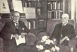 In 1916 García Guijarro visited his king, at the time sort of incommunicado at home arrest in Frohsdorf.[65] The episode remains somewhat obscure; it seems that at the time he still acted as a Spanish consul in Hamburg,[66] though other sources suggest he was briefly detained and interrogated at the police station, as the Austrian security services suspected him of spying.[67] Don Jaime handed him letters to the Spanish party executive; in the documents he demanded strict Carlist neutrality during the Great War.[68] There are doubts as to what happened later. A pro-French Carlist campaigner, Francisco Melgar, claimed that García Guijarro kept at least some documents to himself, which contributed to disorientation within Carlism and allowed pro-German propaganda by the key party theorist, Juan Vázquez de Mella.[69] A present-day historian maintains that the letters were promptly delivered to the party jefé Marquéz de Cerralbo.[70]