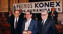 In 1997, in recognition of his long career as creator of the Konex Awards (18 years of awards), all those who had been awarded (1800) and jurors (360) up to that point, paid tribute to him at the Teatro Nacional Cervantes. The coordination was carried out by the University of Business and Social Sciences (UCES).[6]