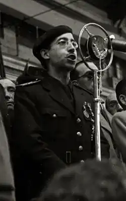 ![]() De Miguel delivering speech during his service in the Blue Division | |
