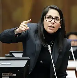 In 2007, she was a candidate to the National Congress to represent Pichincha Province, running under the sponsorship of the right-wing Partido Social Cristiano (PSC); attempt that was not successful.[9] In 2008, she worked as an advisor to the Secretariat of Communication and Information of Ecuador, and that same year she became General Coordinator of Human Resources, Institutional Development and Training of the Superintendence of Companies.[4][10]