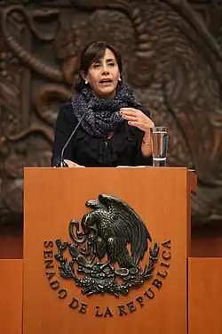 Luisa María de Guadalupe Calderón Hinojosa (born October 23, 1956, in Mexico City) is a Mexican politician affiliated with the National Action Party who served in the Senate of Mexico from 2000 until September 2006.[1] She is currently senator-elect as a PAN proportional representative.[2] Her term in the senate began in late 2012 and will continue through 2018. "Cocoa" (her nickname) is known as a champion for women and minority rights throughout Mexico.[3]