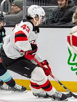 ![]() Hughes with the New Jersey Devils in 2023 | |||