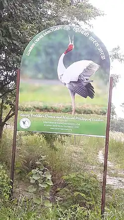 The ancient Lumbini Garden that spreads over the 6 km2 area has been developed into a sanctuary for cranes in Nepal.[1]