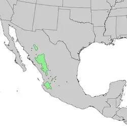 This pine occurs only in the states of Chihuahua, Durango, Zacatecas, Nayarit, Jalisco, Aguascalientes (29° to 22° North latitude). It grows at 1,600–3,000 metres (5,200–9,800 ft) in elevation. It grows in warm temperate and cool climates, with summer rainfall.