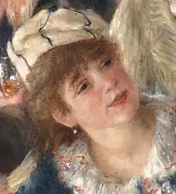 As he often did in his paintings, Renoir included several of his friends in Luncheon of the Boating Party.[4] Identification of the sitters was made in 1912 by Julius Meier-Graefe.[7] Among them are the following:[8]
